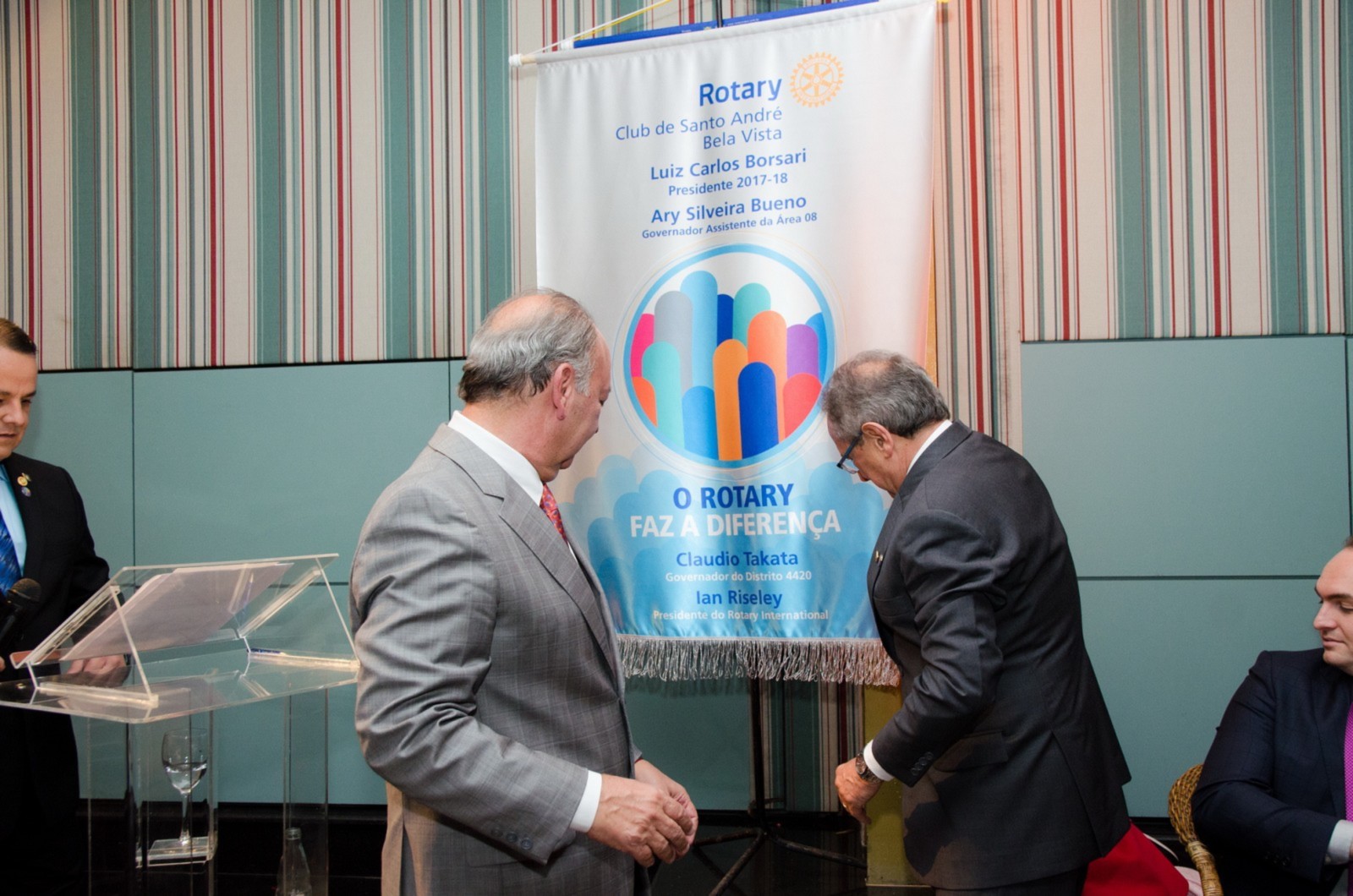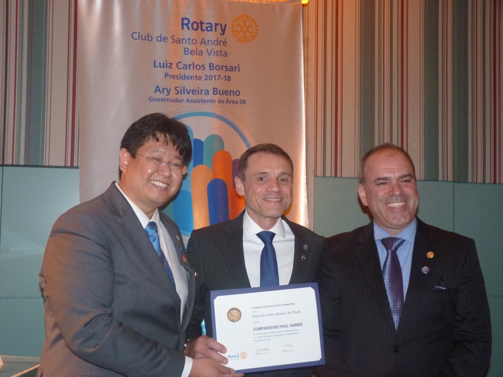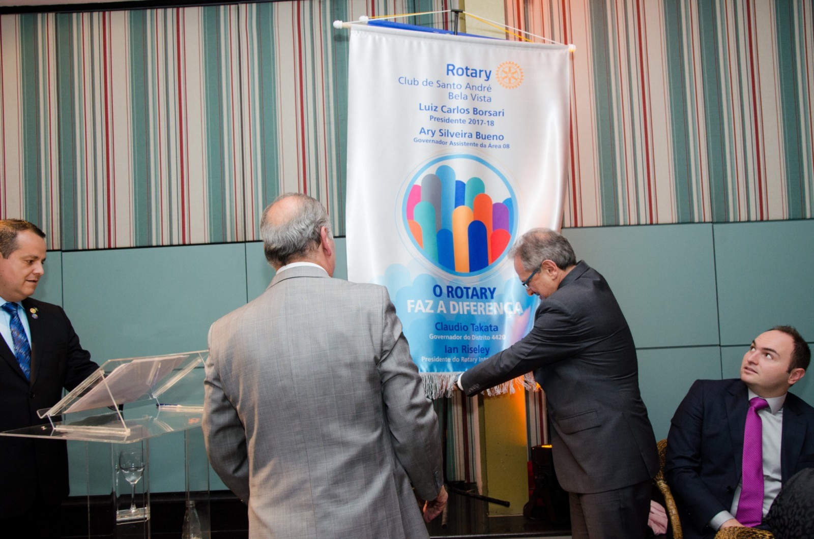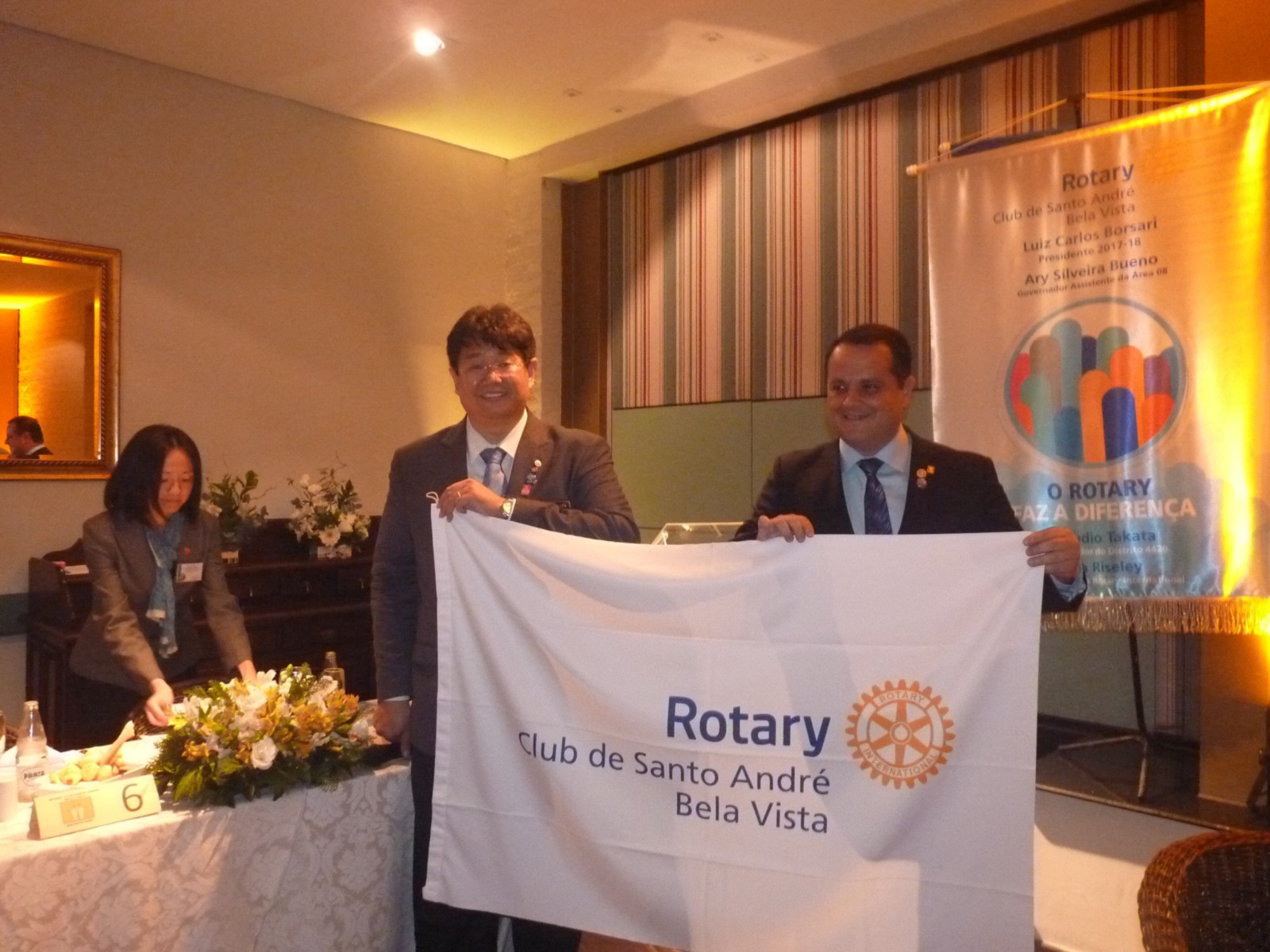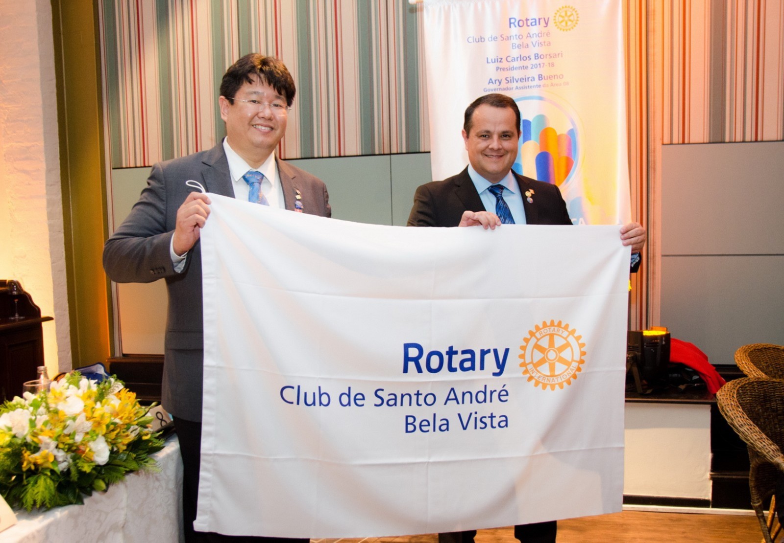 No dia 14 de agosto, o Rotary Club Santo André Bela Vista recebeu a visita oficial do governador do Distrito 4420, Claudio Takata e sua esposa Marie. A noite foi realizada a Festiva de Transmissão e Posse do presidente Luiz Carlos Borsari e Conselho Diretor gestão 2017-2018. A solenidade aconteceu no restaurante Baby Beef Jardim, em Santo André. O evento reuniu autoridades rotárias, membros da equipe distrital, familiares e amigos.