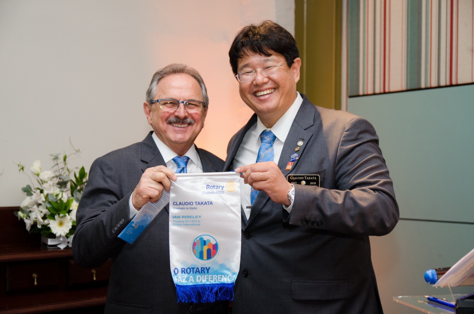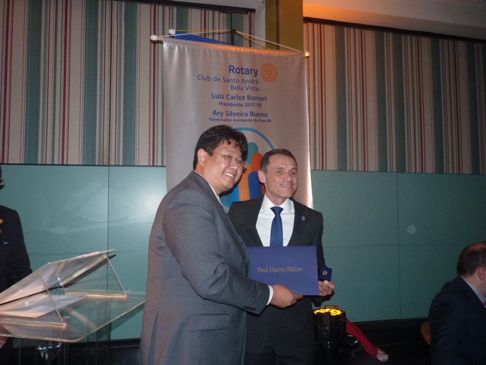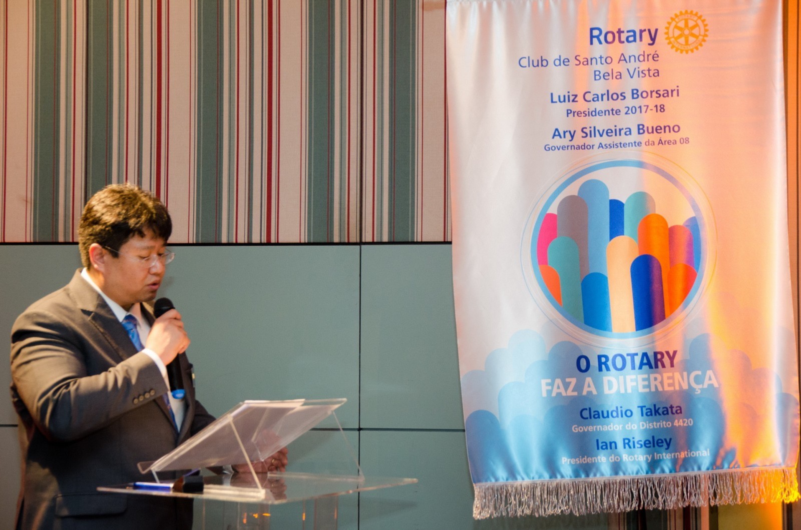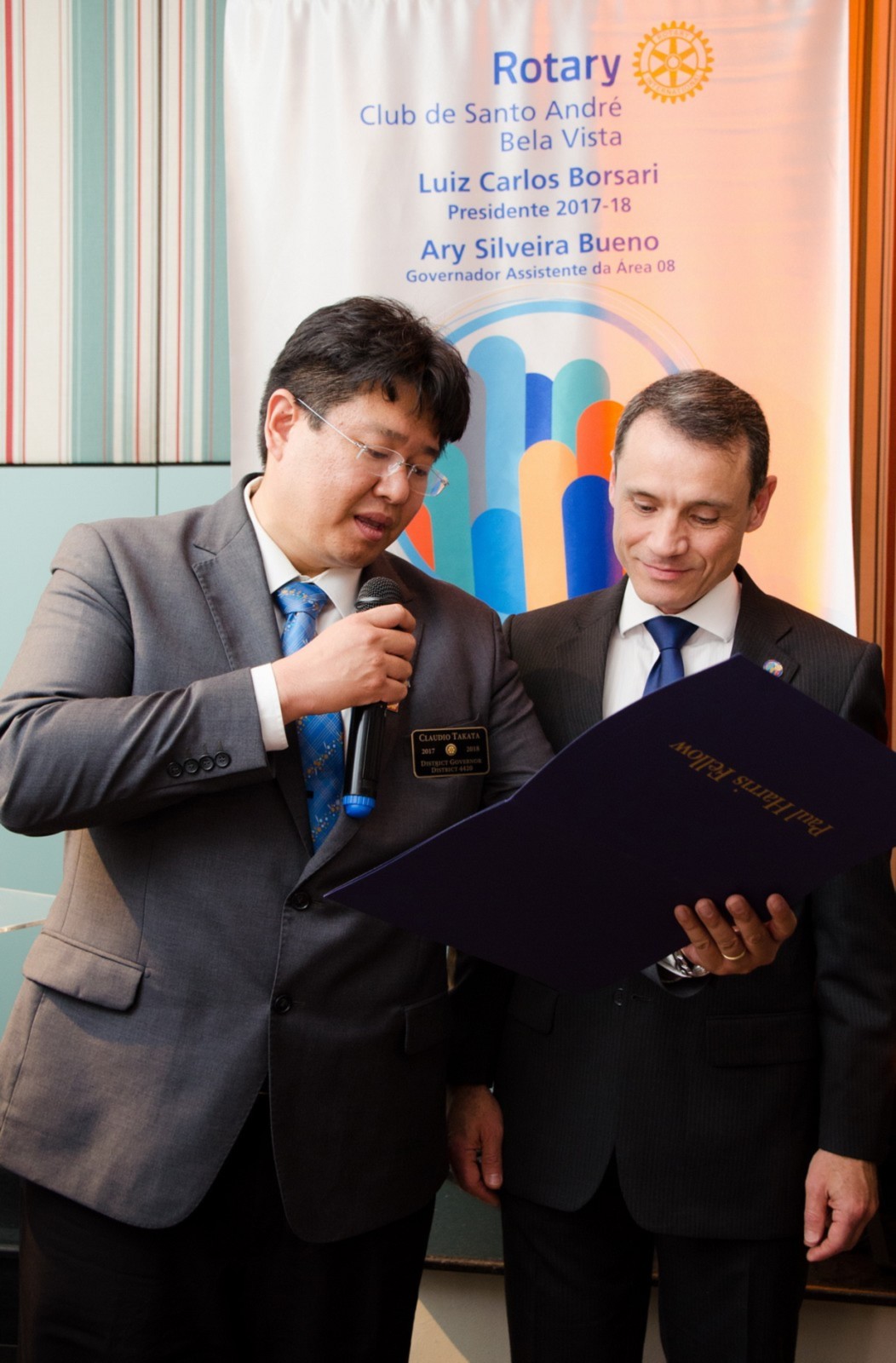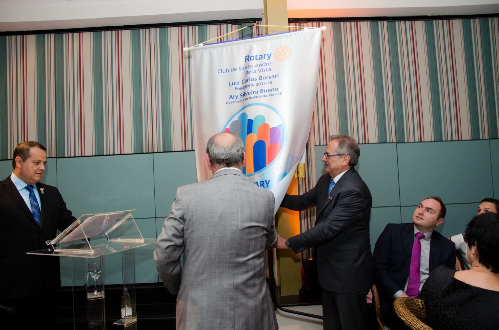 No dia 14 de agosto, o Rotary Club Santo André Bela Vista recebeu a visita oficial do governador do Distrito 4420, Claudio Takata e sua esposa Marie. A noite foi realizada a Festiva de Transmissão e Posse do presidente Luiz Carlos Borsari e Conselho Diretor gestão 2017-2018. A solenidade aconteceu no restaurante Baby Beef Jardim, em Santo André. O evento reuniu autoridades rotárias, membros da equipe distrital, familiares e amigos.