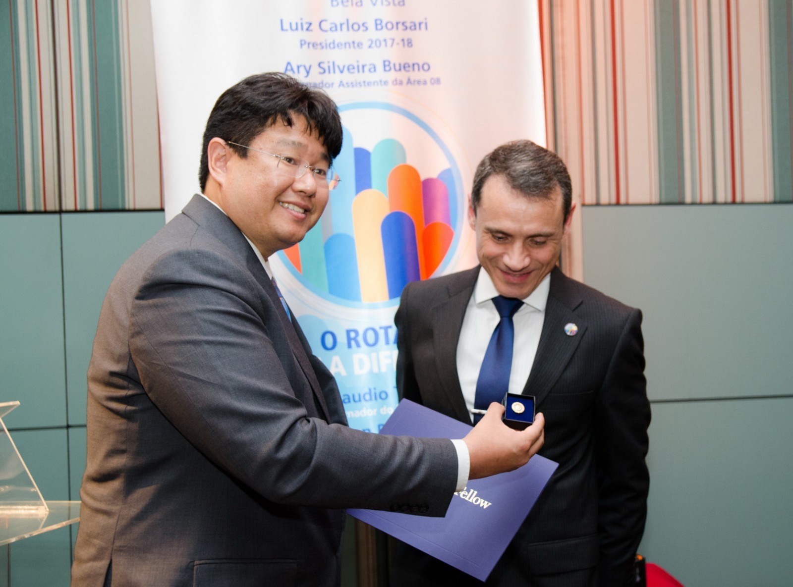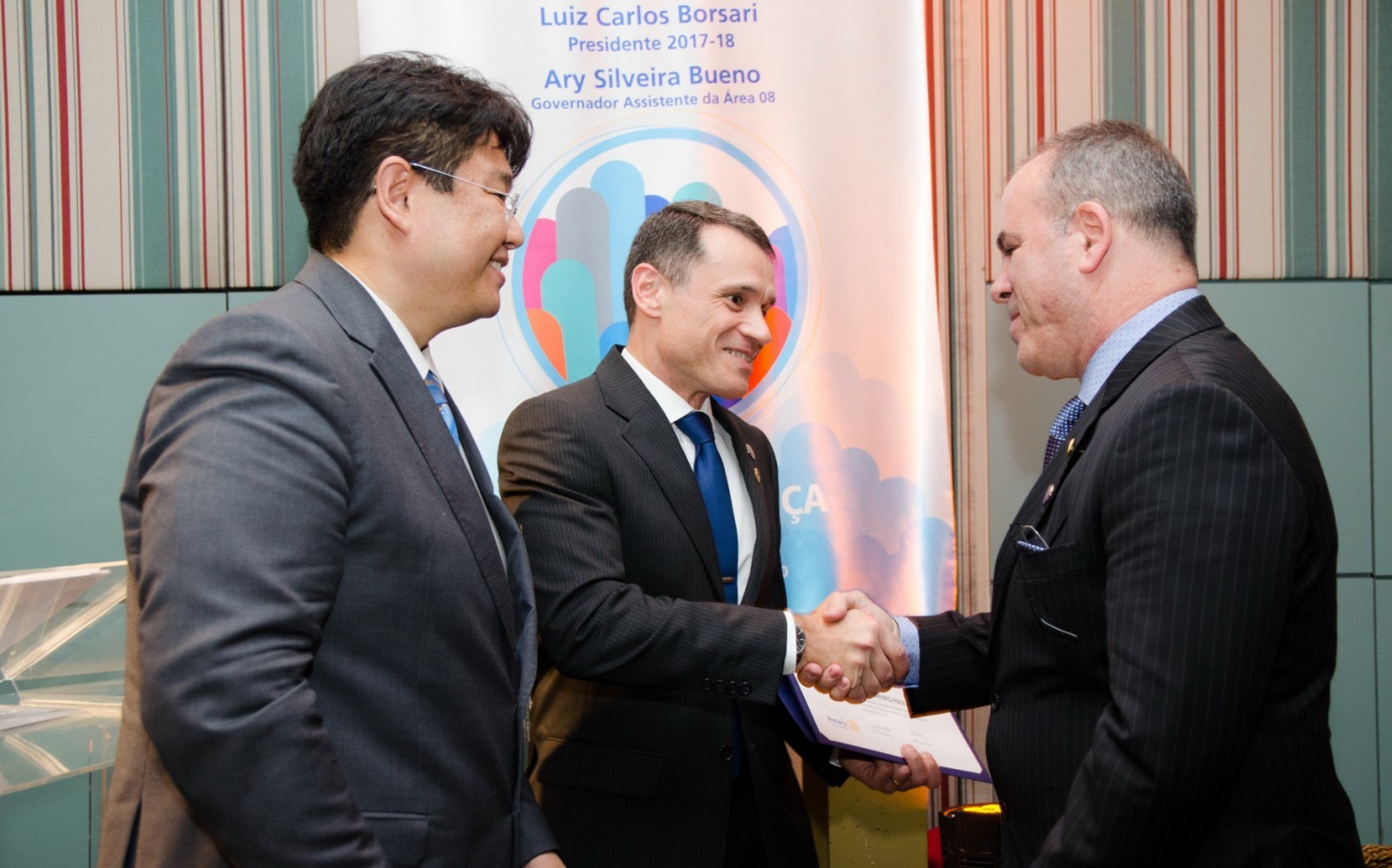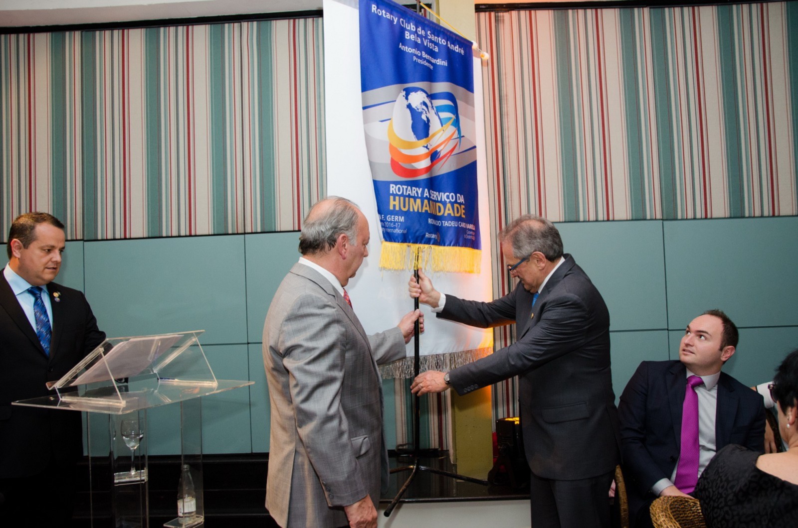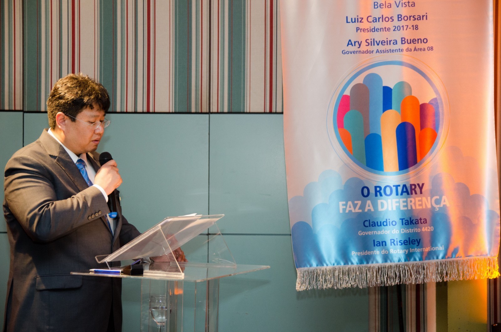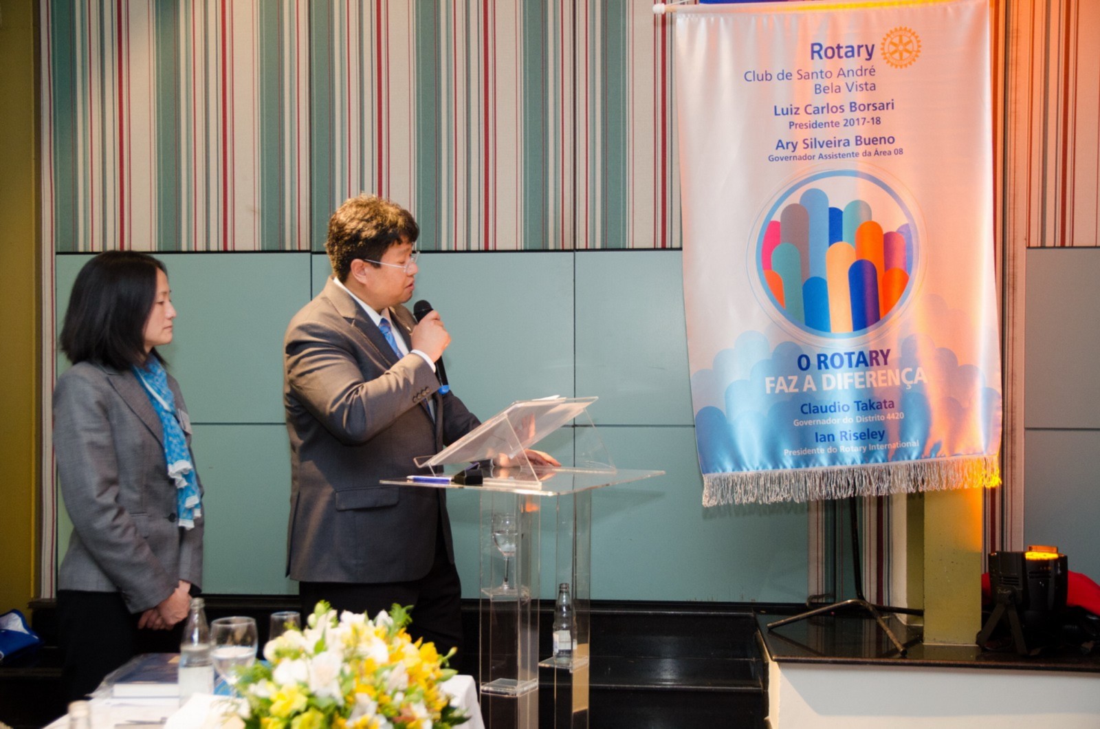 No dia 14 de agosto, o Rotary Club Santo André Bela Vista recebeu a visita oficial do governador do Distrito 4420, Claudio Takata e sua esposa Marie. A noite foi realizada a Festiva de Transmissão e Posse do presidente Luiz Carlos Borsari e Conselho Diretor gestão 2017-2018. A solenidade aconteceu no restaurante Baby Beef Jardim, em Santo André. O evento reuniu autoridades rotárias, membros da equipe distrital, familiares e amigos.